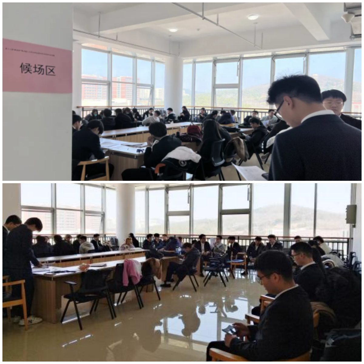 参赛团队在候场区为答辩做准备