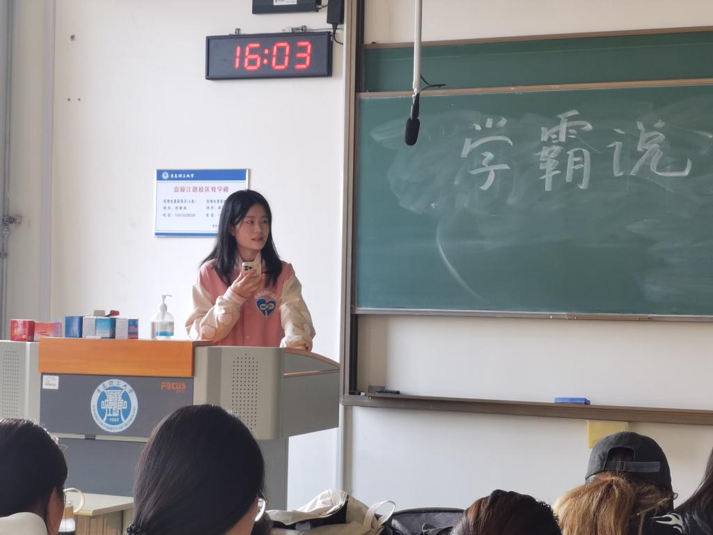 榜样展示,以点带面,发挥优秀学生的带头作用。学院组织山东省优秀学生、考研成功学生等优秀榜样经验分享会,鼓励学生奋勇争先。班级召开学情分析主题班会进行“学霸笔记”“学霸说”等学习心得分享,交流自身的阶段规划及学习经验,发挥榜样教育作用。