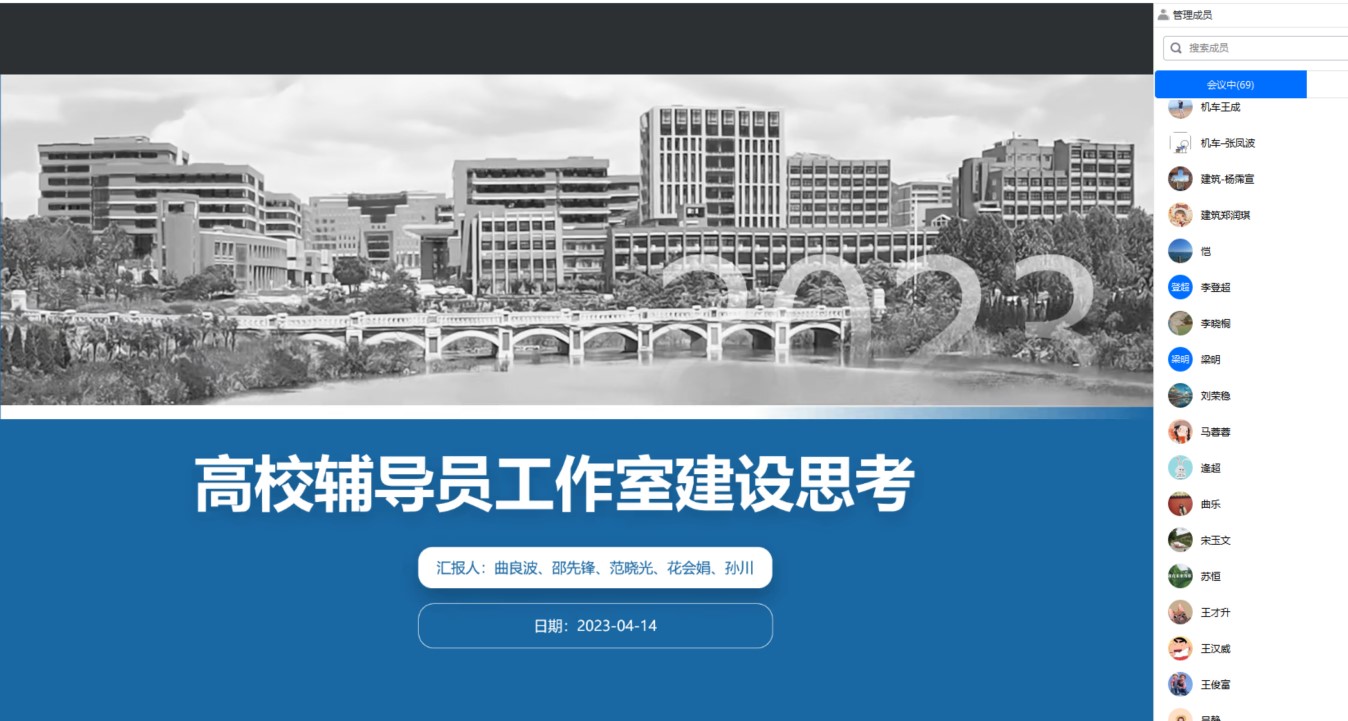 4月上旬,学生工作处组织两批共10名辅导员赴西安、杭州两地,进行为期3天的素质能力提升培训,培训主题为辅导员工作室建设与大学生心理危机干预。为扩大辅导员外出培训学习的辐射效应,达到资源共享、共同提高的目的,4月14日,学生工作处组织开展了辅导员培训学习心得分享沙龙。环境与市政工程学院辅导员花会娟和信息与控制工程学院辅导员刘荣稳担任主讲,全体辅导员线上参会,学生处教育管理科科长韩小燕主持分享沙龙。
