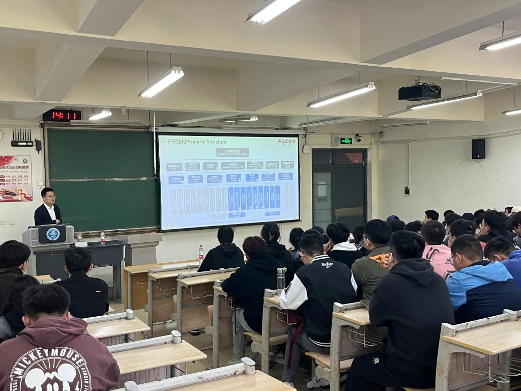 4月26日,按照伟德国际1946bv官网-潍柴现代产业学院规划部署,产教融合系列课程在西海岸新区主校区一教B202开讲。潍柴动力股份有限公司正高级工程师王意宝作了题为《发动机技术最新发展动态》的学术讲座,讲座由产教融合办公室主任姜芙林主持,机械制造教研室仲照琳参加讲座,来自机械与汽车工程学院车辆工程专业、机械设计制造及其自动化专业2020级的百余名同学聆听了讲座。