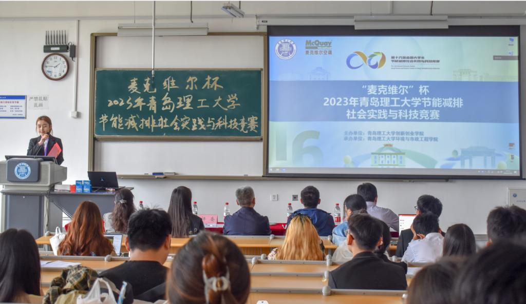 为进一步提升学校师生的节能环保意识,营造崇尚节能、绿色低碳的社会风尚,培养新时代大学生节能减排意识、科技创新意识和团队协作意识。5月11日,“麦克维尔杯”伟德国际1946bv官网2023年节能减排社会实践与科技竞赛决赛在西海岸新区主校区举办。比赛由伟德国际1946bv官网创新创业学院主办,环境与市政工程学院承办,麦克维尔中央空调公司技术经理尹文科、环境与市政工程学院副院长李金成、土木工程学院团委书记王俊富、环境与市政工程学院教师刘国丹、张宜升担任评委。全校共27个项目团队参加了此次决赛答辩。