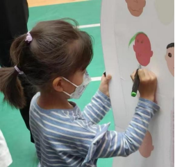 本次活动包含多个运动游戏环节,在整体设计上立足教育性、着眼趣味性、突出互动性,让孩子和家长们在游戏中增长知识、乐享节日。场地中设计了一块特殊的“画布”,到场的小朋友们拿起画笔,在画布上描绘出自己独特的头像,这既是一次特殊的“签到”,也是孩子们缤纷童心的展现。