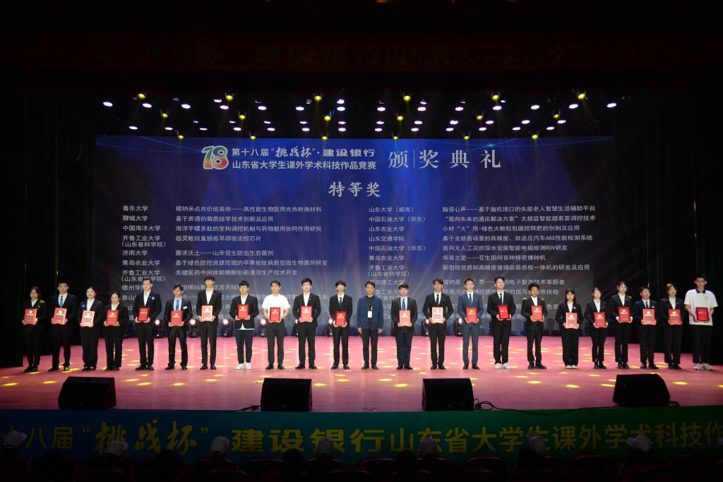 5月22日上午,由共青团山东省委、山东省科学技术协会、山东省教育厅、山东省科学技术厅、山东社会科学院、山东省学生联合会主办,齐鲁工业大学(山东省科学院)、潍坊职业学院承办的第十八届“挑战杯”·建设银行山东省大学生课外学术科技作品竞赛决赛在齐鲁工业大学(山东省科学院)落下帷幕。伟德官网学子获得山东省特等奖1项、一等奖5项、二等奖2项、三等奖4项,学校获“优秀组织奖”。