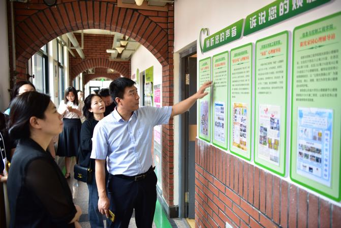 会后,山东管理学院一行实地考察了学工融媒体中心小鼎工作室、学校校史馆、大学生心理健康教育中心、一站式社区建设等情况。