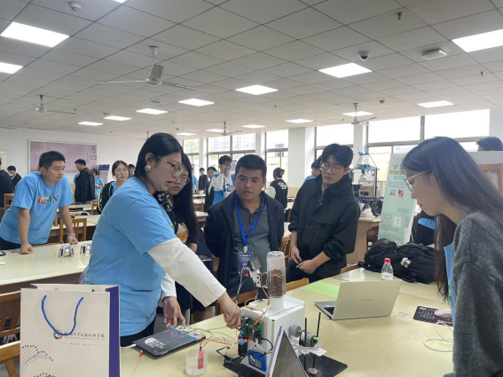 比赛分为巡展路演环节和现场答辩环节。在巡展路演环节中,评委老师和参观人员对所有线下参展作品进行打分,最终评选出现场最佳人气奖;在现场答辩环节中,参赛同学充分阐述作品设计理念,积极回答专家提问,展现对项目未来发展的清晰规划。