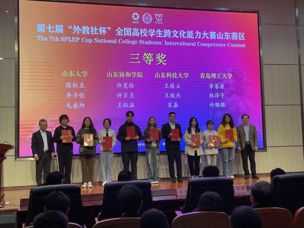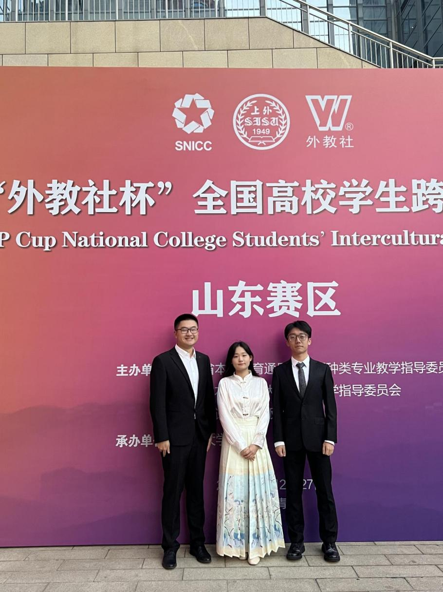 10月26日至27日,第七届“外教社杯”全国高校学生跨文化能力大赛(山东赛区)在青岛大学举办。伟德官网人文与外国语学院英语专业章睿康同学、商学院财务管理专业许璐璐同学、国际商务专业林泽宇同学(指导教师:李娇)组建的团队在大赛中喜获省级三等奖。