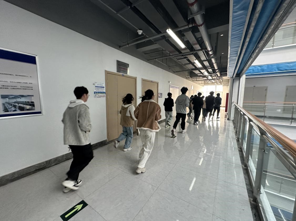 演练伊始,随着警报声响起,实验室立即启动了消防应急预案。教师迅速按照预定的疏散路线组织学生进行有序撤离,整个过程有条不紊。师生在撤离过程中表现出高度的安全意识和团结协作能力,确保安全保护措施到位。