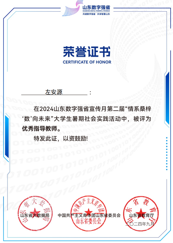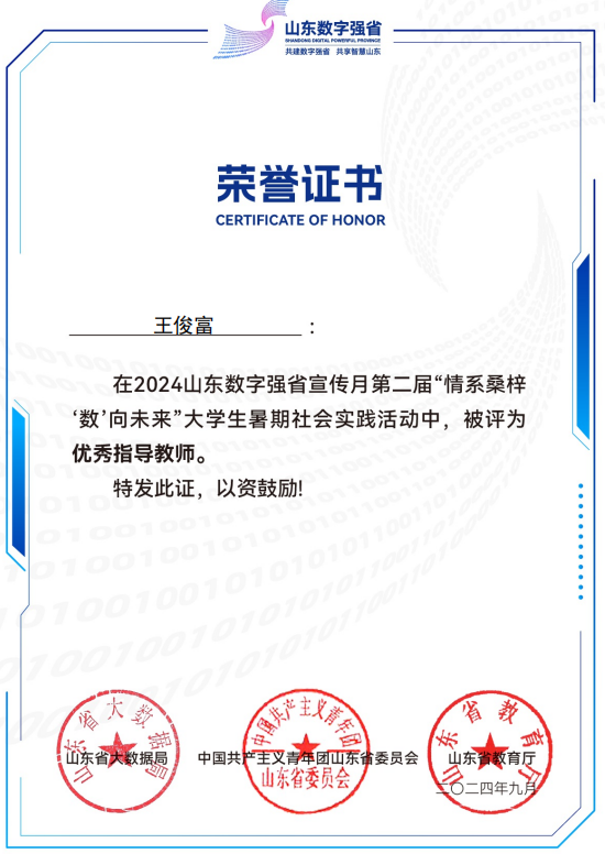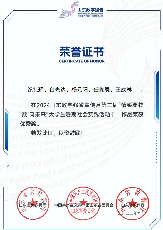 近日,省大数据局、共青团山东省委、省教育厅联合组织开展了第二届“情系桑梓‘数’向未来”大学生暑期社会实践活动评选情况。土木工程学院学生调研报告《数智引领,绿色赋能》(指导教师:王俊富)获省级三等奖,调研报告《数字赋能:沂源县宏观数字建设实践研究》(指导教师:左安源)获省级优秀奖。
