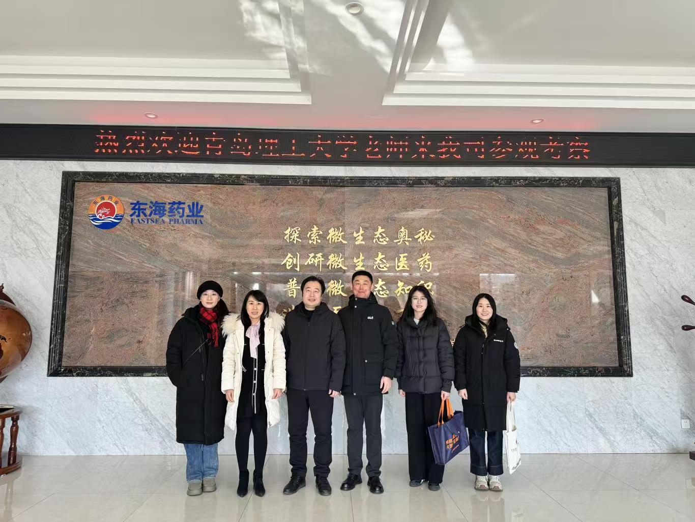 为积极推进校企合作,持续挖资源、拓岗位,1月16日,学生工作处副处长兼就业指导中心主任邵先锋,商学院党委副书记、副院长马松,人文与外国语学院团委书记、学生工作办公室主任胡彤,人文与外国语学院网新党支部书记、教研室主任常宁,以及学院、就业指导中心工作人员赴青岛东海药业有限公司开展校企合作交流。青岛东海药业有限公司组织发展处处长李玉先、线上事业部总经理助理王翠敏、人力资源部部长王鑫参加活动。