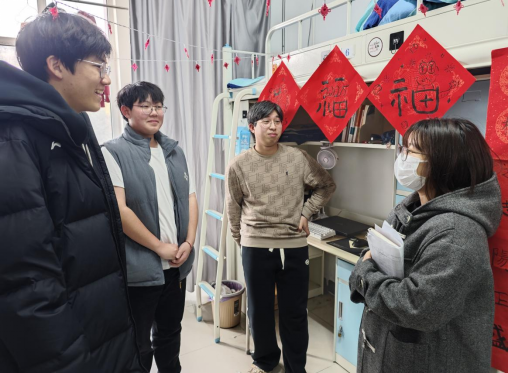 2月23日,学院党委书记肖学斌、院长云乐鑫带领毕业生辅导员深入毕业生宿舍进行走访慰问,详细了解毕业生近期的生活、学习和就业情况,并就近期研究生复试和考公面试准备等方面答疑解惑,对毕业生在就业、升学及生活中存在的困难进行心理疏导,提供更加优质的考研与就业指导。