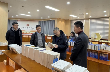 肖学斌对山东社会科学院的长期支持表示感谢,并介绍了近年来学院发展取得的成效。金炜博汇报了学院学位点建设情况,对应用经济学学位点建设情况、招生规模和人才培养模式进行了讲解。罗涛就双方研究生联培、科研合作、师资培养、平台建设等进行了说明,双方围绕后续合作要点展开深入讨论,就存在的重点难点进行了沟通,就下一步工作推进进行了商议。会后,参观了山东社会科学院图书出版物展厅和科研成果展厅。