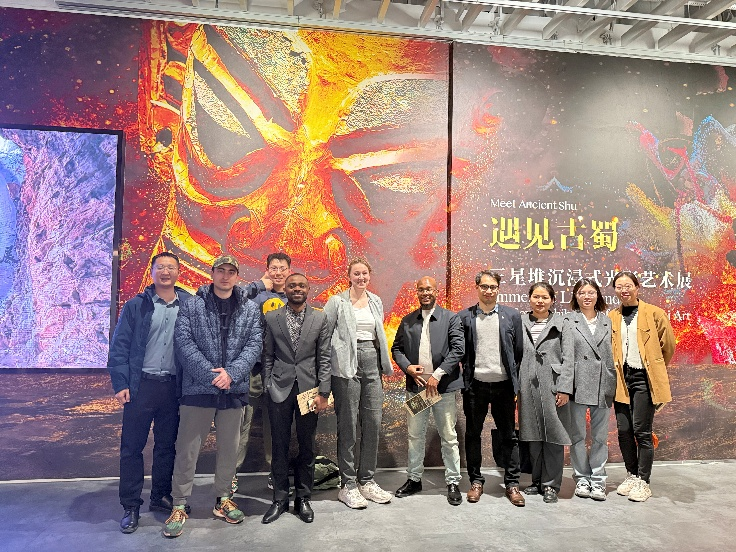 24日至25日,工作坊以“理论+实践”模式深化创新探索,创新开展了“双城对话”现场研学。在青岛历史城区改造项目研学过程中,中英专家团队围绕绿色可持续技术进行了深入交流讨论,Bernard Atuahene教授提出了低碳建材、雨水循环系统等绿色技术,与中方团队共同设计出“可呼吸的历史街区”方案,开创文化遗产“活化”与现代城市功能融合的新范式。代表团走进海天大厦“遇见古蜀——三星堆沉浸式光学艺术展”,在360度全息影像中穿梭青铜神树矩阵,在感受中华优秀传统文化的同时,从工程角度引发传统与现代融合的思考。