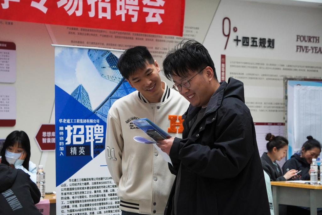招聘会现场供需两旺,毕业生积极咨询岗位要求、企业发展前景,部分企业同步开展现场面试并发放录用意向书。学院党委副书记兼副院长王鹏飞与招聘单位深入交流,了解行业用人需求变化,他表示,面对建筑业智能化、绿色化转型,学院将动态优化培养方案,强化校企协同育人,为企业输送更多懂技术、能创新、适应快的复合型人才。