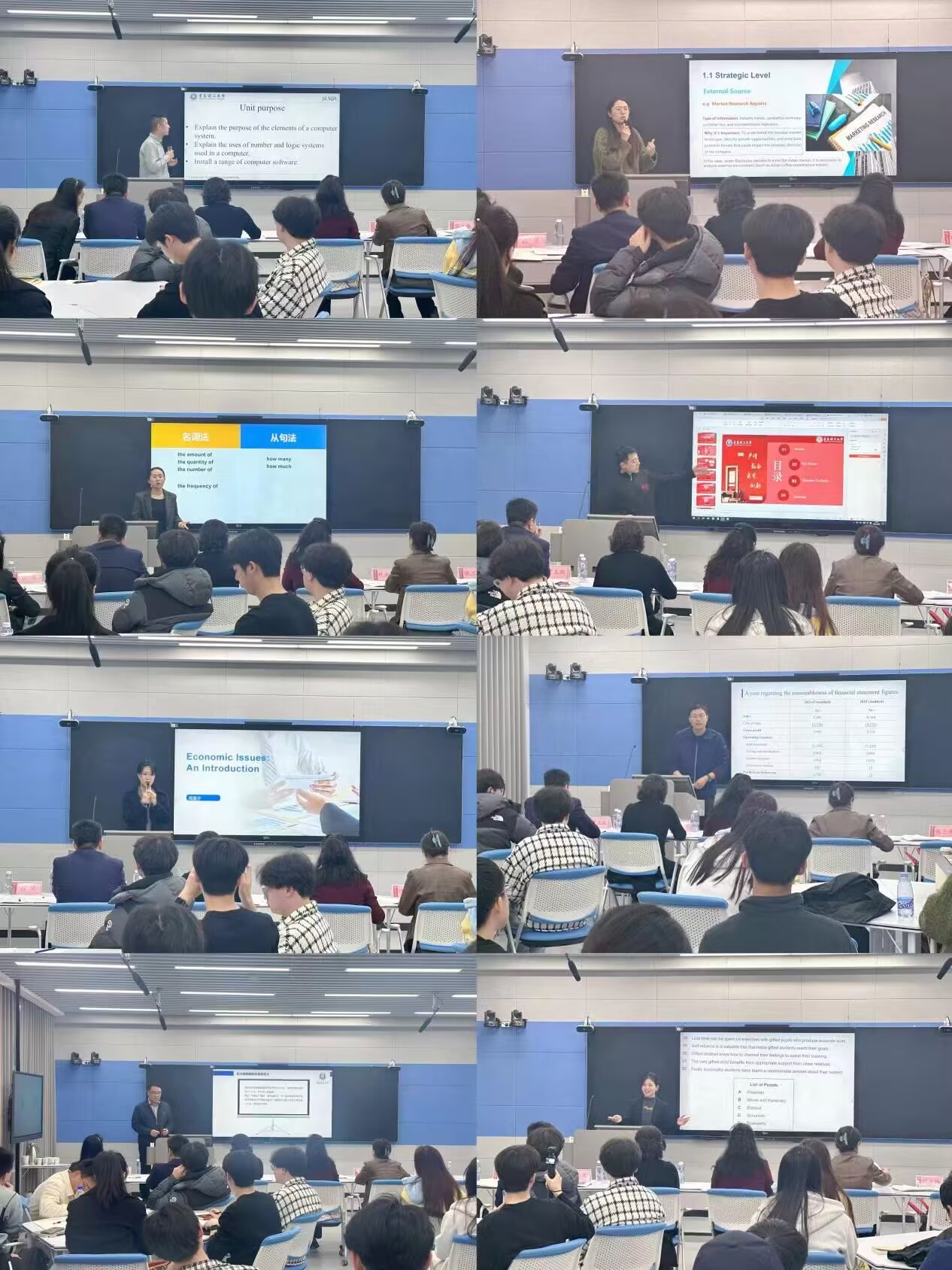 比赛现场,参赛教师围绕SQA项目雅思课程和专业课程,融合国际化教育理念,采用全英文或双语教学模式,灵活运用案例分析、情景模拟、数字技术等多元化教学方法,充分展现了对课程思政元素的有机融合与跨文化教学能力的深度探索。评委组从教学目标设计、教学内容创新、课堂互动实效、国际化特色体现等维度进行对每位参赛教师进行了综合点评和评分。