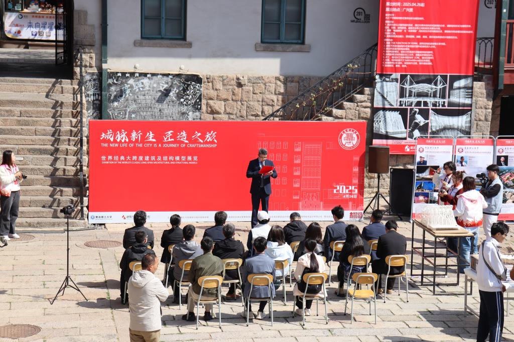 清华大学建筑设计研究院青岛分院总建筑师王子岩为本次展览致辞并提出期望,他表示,希望通过本次展览,能够激发更多人对建筑艺术的兴趣,丰富社区文化,推动建筑领域的交流与合作,为未来的建筑创新注入新的活力。学院党委书记吕楠致辞并宣布展览开幕。她强调,此次世界经典大跨度建筑及结构模型展,不仅是学院专业建设成果和教育教学质量的集中展示,也是学院推进教学改革、深化课程思政建设的生动实践,对开展历史建筑保护与创新利用的积极探索具有重要意义。