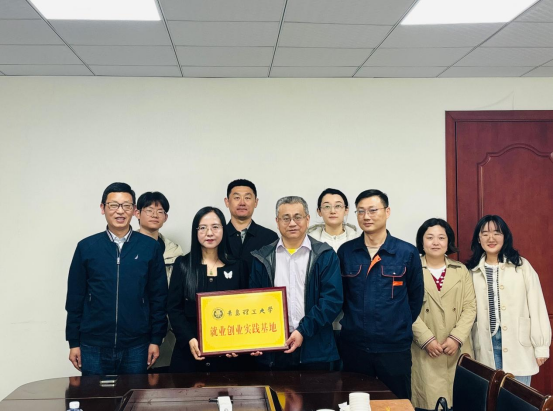 在校友企业青岛可信工业制品有限公司,总经理韩玲珂对公司发展历程、业务板块、发展规划等进行详细介绍。肖学斌结合学院专业设置、人才培养、产教融合等方面与企业进行深入交流,向企业推介2025届毕业生,希望双方未来进一步拓展合作领域,实现人才输送与企业需求双向奔赴。双方签订就业创业实践基地合作意向书,并举行就业创业实践基地挂牌仪式。会后,学院2025届3名毕业生意向签约就职。