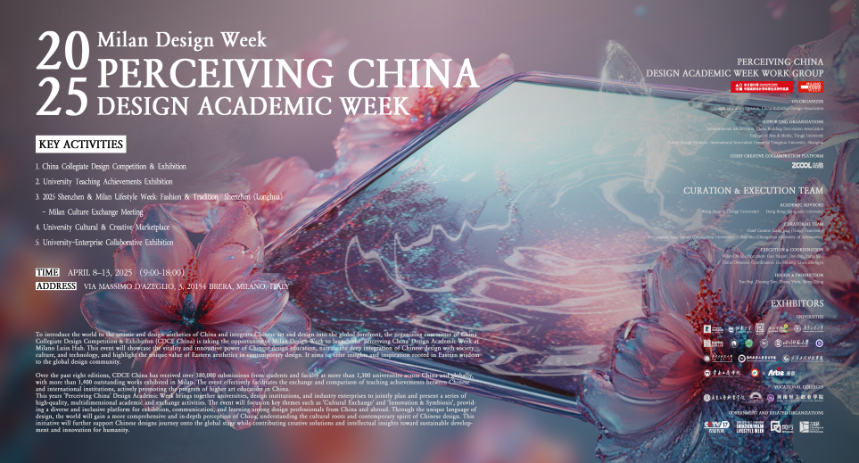 作为全球设计领域的顶级盛会,米兰设计周不仅是国际设计趋势的风向标,更是东西方文化交流的重要平台。作为2025米兰设计周官方活动之一,由意大利米兰设计周组委会、米兰设计周——中国高校设计学科师生优秀作品展组委会、中国高校设计创新实践大赛暨米兰作品展推广办公室主办的“感知中国”设计学术周活动暨第八届米兰设计周——中国高校设计学科师生优秀作品展米兰展出活动,自4月8日在米兰Luiss Hub中心启动,展出及系列学术交流活动吸引了来自世界各地的众多设计教育人士、从业者和爱好者前来参与。参展作品涵盖产品设计、环境空间等多个类别,充分展示了中国设计教育的丰硕成果,有力推动了中意欧设计教育领域的交流与合作。