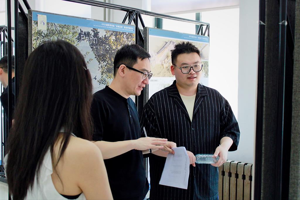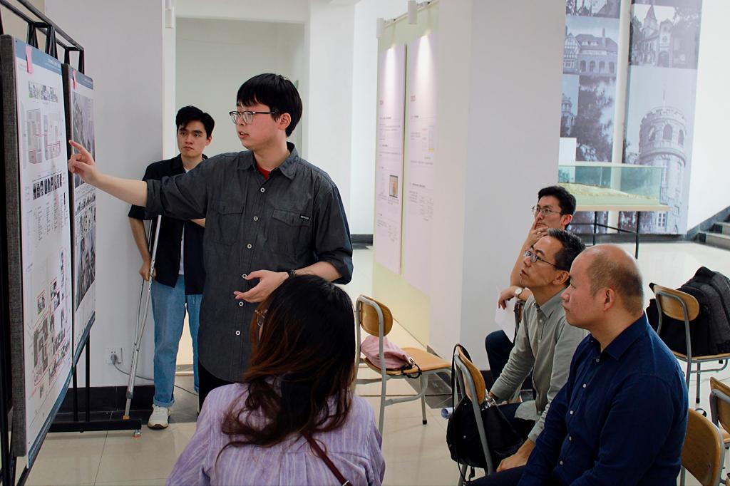 展评过程中,参赛同学分别对自己的设计成果进行了详实汇报。设计主题的多样化带来了设计逻辑和设计形式的多元化,作品涵盖“历史界面织补”“垂直院落重构”“智慧基础设施嵌入”等创新方向。评委老师对同学们的创新思维给予了充分认可,并从设计逻辑严谨性、技术落地可行性、文化表达深度等方面进行了细致点评和指导。