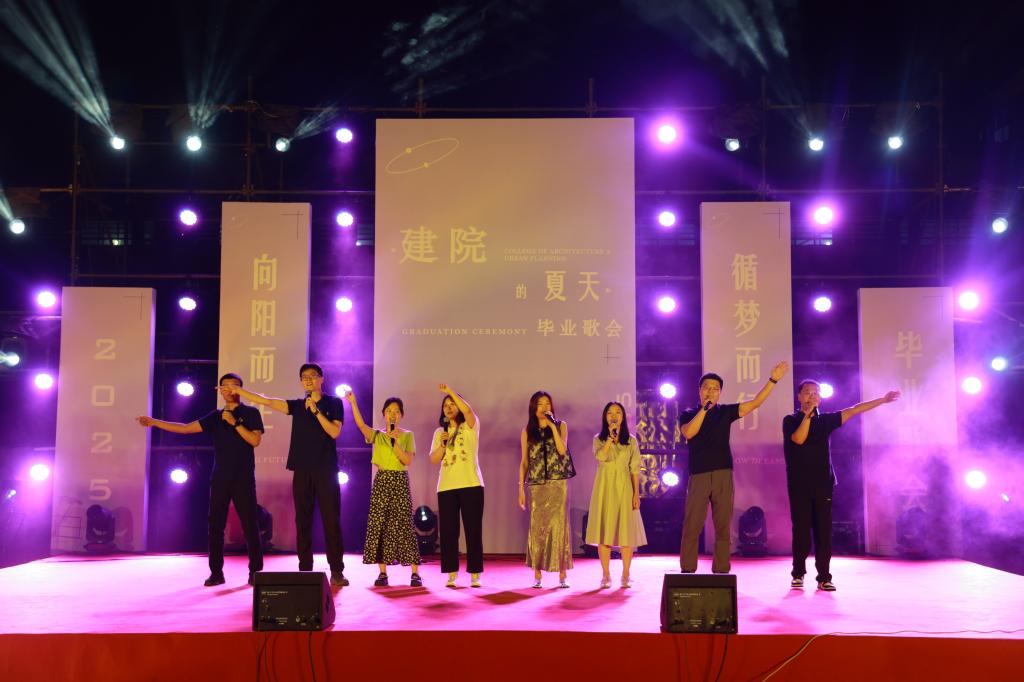 6月16日晚,建筑与城乡规划学院“建院的夏天”2025年毕业歌会在市北校区南院篮球场温情上演。学院党委书记吕楠,副院长(主持工作)解旭东等全体班子成员,辅导员、班主任、教师、校友代表及全体毕业生共赴这场关于成长与告别的青春盛宴,为宝贵的校园时光书写下浪漫终章。