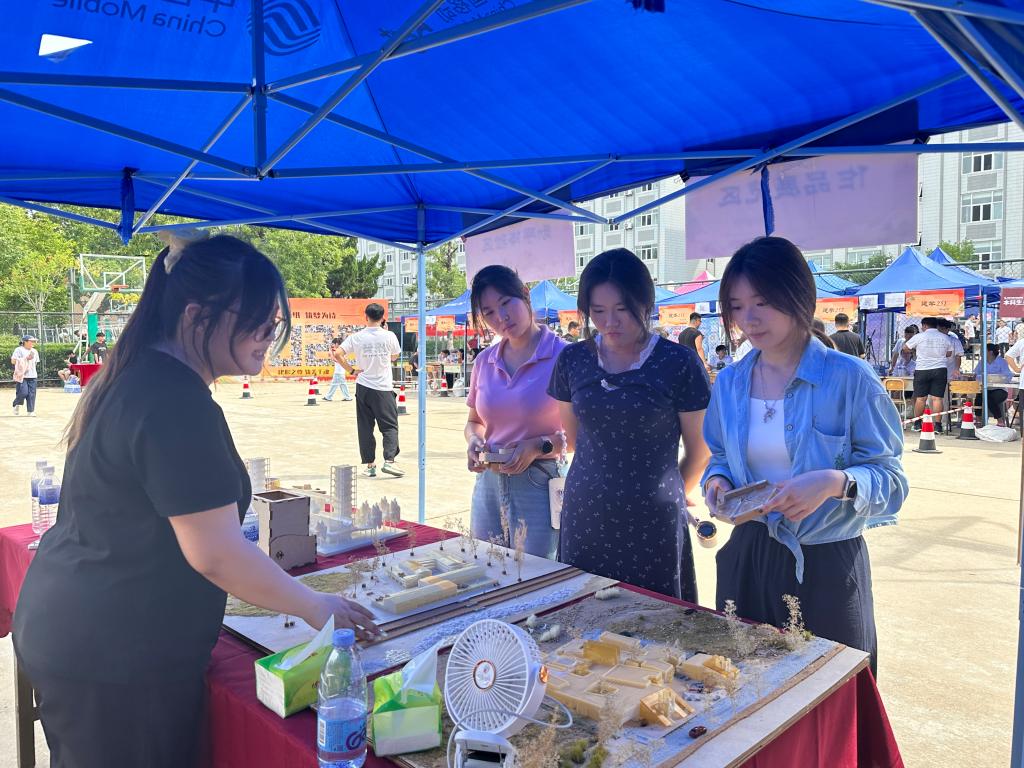 学院迎新现场设置集“专业成果展示、实践体验互动、师生交流答疑”于一体的“专业启蒙空间”。“作品展览区”,从建筑设计到规划实践,全方位展现学科魅力;“建筑模型展区”包含建筑微缩模型、城市更新设计图册、乡村规划实践方案以及学院学子优秀获奖作品等。城规231张嘉睿一边指引新生观察模型细节,一边分享设计思路,“未来你们也会参与类似项目,用专业知识解决真实的城市问题。”