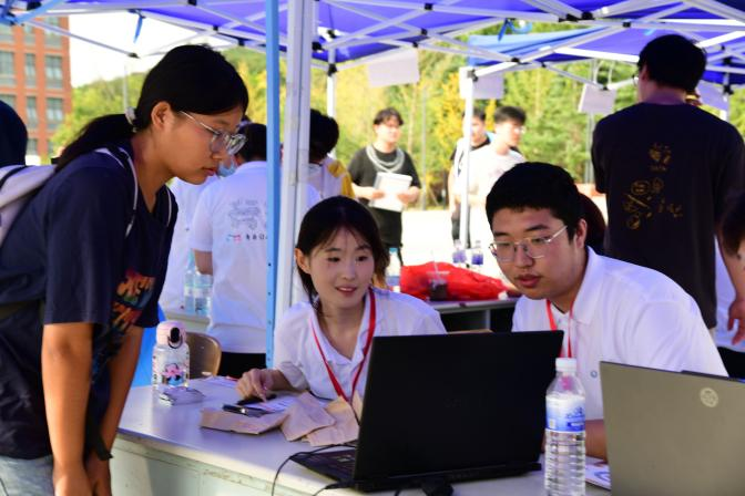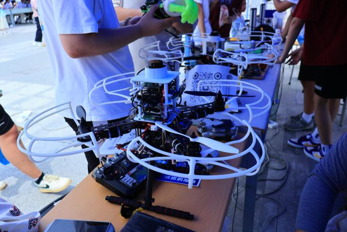 无人机灵活升空、智能羽毛球收集装置高效运转、智能义肢精准响应动作、融合校园文化的自制PCB板设计精巧、送药小车穿梭演示……礼贤广场上的“科技创新,逐梦信控”主题科创成果展,成为迎新现场的“科技亮点”。一系列由学生自主研发的科创成果,让新生直观感受大学科创魅力。