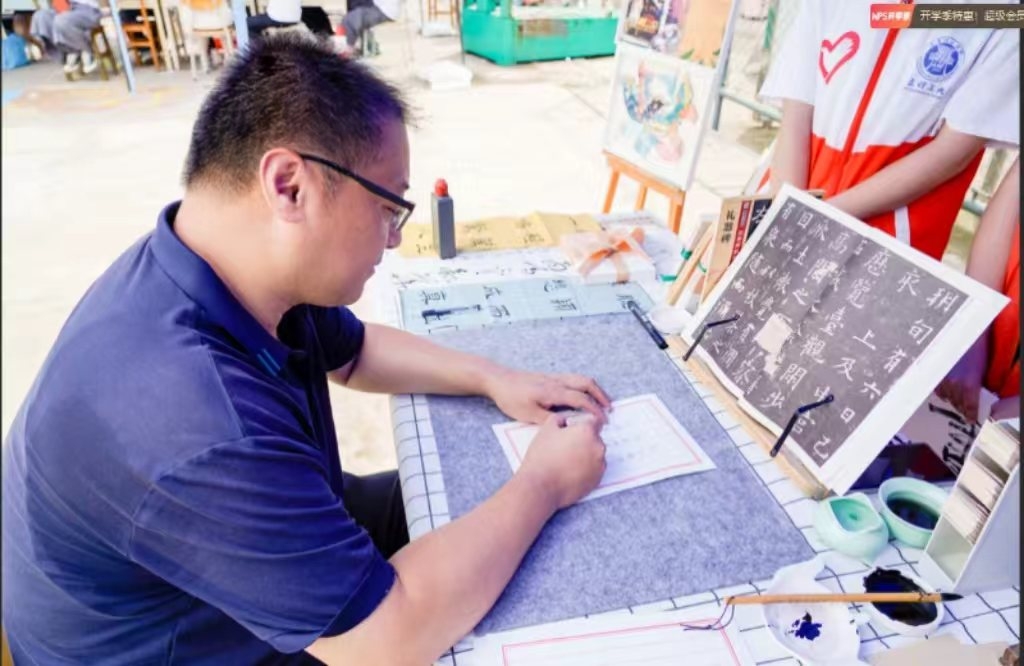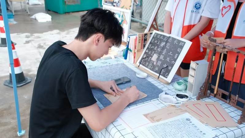 签名墙前,新生们纷纷拿起笔,记录这专属的一刻。板上密密麻麻的姓名不仅是对自己大学挑战的庄重承诺,也是与学院情感的深厚联结,更是向未来启航的坚定誓言,一笔一划,都承载着对未来的期许与梦想。颇具专业特色的“一封家书”活动吸引了众多新生家庭参与。案台陈列笔墨与宣纸以及家书范本创作指引。参与家庭或亲子携手共书,在默契配合中写下真挚寄语;或各自挥毫进行书法创作,将对未来的期盼、对家人的牵挂凝于笔端。墨香浸润校园,一笔一划间,满是牵挂与嘱托,既有家长对孩子独立成长的嘱托,也有学子对家庭关怀的感恩,更蕴含着家校同心共育的美好愿景。