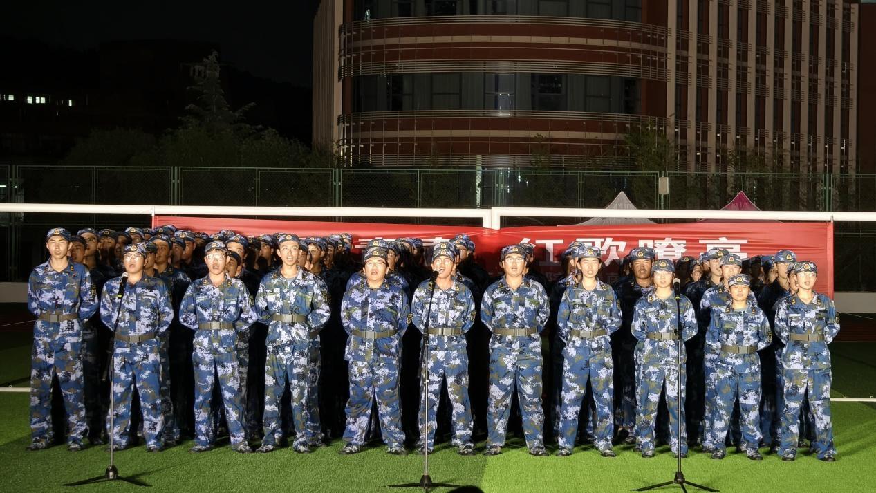庄严的国歌声为活动拉开序幕,13个新生连队、共计1400余名新生依次登台,以饱满的热情和铿锵的节奏,深情演唱了《团结就是力量》《没有共产党就没有新中国》《歌唱祖国》等经典红歌。各连队在演唱前高呼口号,展现出昂扬向上的精神风貌。其中,四营十三连利用休息时间完成分声部合唱训练,充分体现出新生团结协作、追求卓越的集体意识。