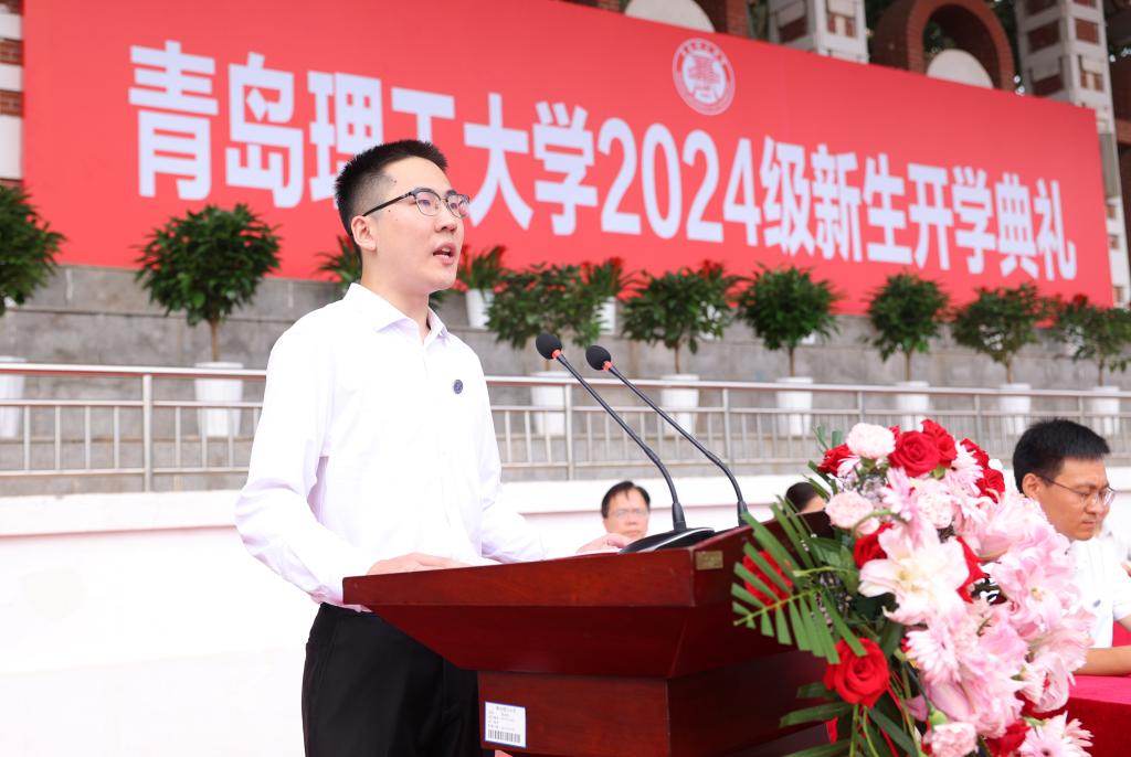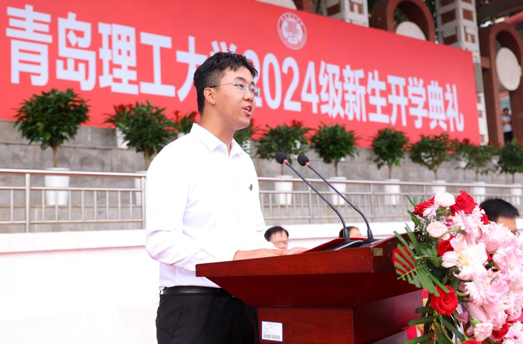 土木工程学院土木工程专业2021级8班刘汗青、临沂校区机械与电子工程系机械设计制造及其自动化专业2021级3班胥瑞康代表在校生发言,分享了在大学校园生活中的成长与感悟,勉励学弟学妹们在新的新征程上要以饱满的热情和坚定的信念,一道汇入学校发展的浪潮之中,肩负起继续书写学校美好未来的光荣使命,创造更加美好的明天。