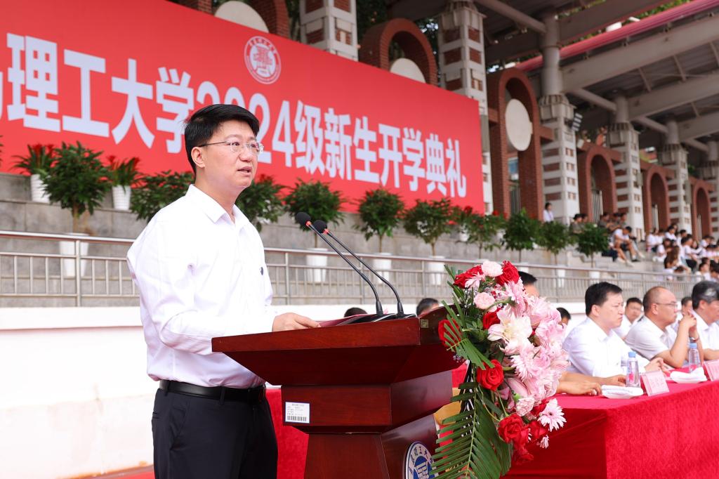 张凯在讲话中,向2024级新生表示热烈欢迎和祝贺,并介绍了学校办学历史、优势特色,以及近年来取得的显著发展成果。