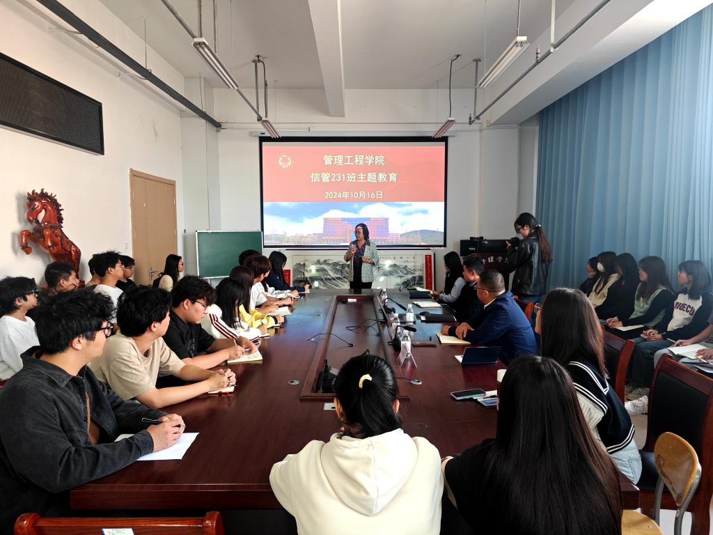 为进一步落实校领导深入联系班级制度,全方位服务学生成长成才,10月16日,校党委常委、副校长陈韶娟深入管理工程学院信管231班召开主题教育班会并与学生座谈交流。学院党委书记孟凡勇主持活动,党委副书记王中帅,团委书记、学工办主任宋晓峰,辅导员、班主任和信管231班全体学生参加本次活动。