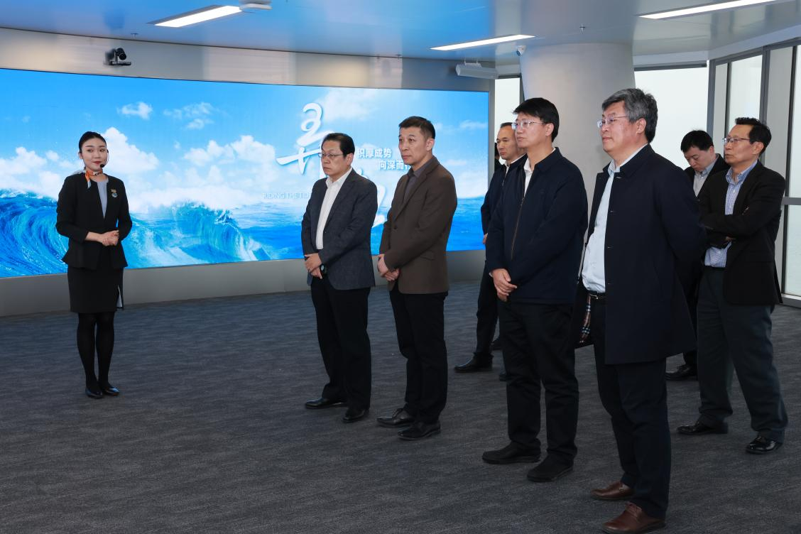首先,党委理论学习中心组(扩大)成员实地参观了胶州湾第二海底隧道项目展厅及数字建造平台、青岛国信集团智慧中心,听取了深远海大型智慧养殖工船项目情况。通过一线体验式学习,深度了解企业在关键核心技术攻关、海洋渔业转型升级、城市重大基础设施建设等方面的科技创新成果与未来发展规划情况,主动对接找准产业需求,持续探索产教协同机制,携手服务国家重大战略和经济社会发展需求。