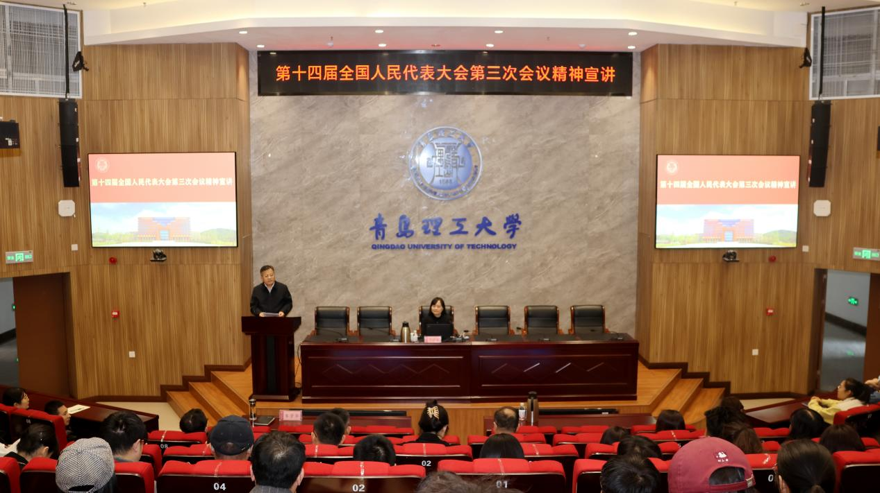 在报告中,邓朗妮从大会盛况、大会主要精神、代表履职情况以及让两会精神在学校落地生根、开花结果4个方面,系统解读了国家宏观政策导向和教育领域改革重点,从教育教学改革、科技创新、社会服务等方面提出了现实可行的具体措施,对精准把握、贯彻落实好全国两会精神提供了清晰的理论框架和实践路径。她表示,要深入领会习近平总书记重要讲话精神实质和精髓要义,准确把握中国式现代化对教育、科技、人才的需求,持续强化加快教育强国建设的使命担当,并勉励在场师生要坚持实干为要、创新为魂,为谱写中国式现代化新篇章贡献智慧和力量。