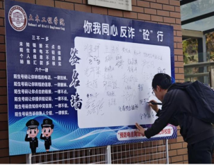 4月22日,学院召开防范网络诈骗主题教育交流会,学院党委副书记、副院长王鹏飞主持会议,各年级学生骨干代表及辅导员约50人参会。王鹏飞表示,当前电信网络诈骗呈现“精准化、隐蔽化、团伙化”新态势,学生骨干需切实增强责任意识,发挥桥梁作用,在群体中做好宣传引导,及时识别并制止潜在风险,全力维护学生权益。会上同步成立学生骨干“反诈宣传突击队”,通过宿舍走访、工位宣讲等“点对点”形式,深入学生生活场景开展精准宣传,并设置“反诈承诺”条幅,吸引近百名学子郑重签署承诺,以行动共筑校园安全防护网。