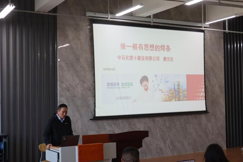 在“做一根有思想的焊条”主题报告会上,唐元生将焊接工艺升华为劳动精神的美学隐喻,用生动的焊接工艺作比喻,向学院师生阐释了新时代劳动者的精神内核。通过讲解超级工程的焊接案例、演示关键工艺技术,指出既能驾驭数字焊枪的精准,又葆有精神火种的热度是智能化浪潮下高技能人才的核心竞争力,强调实体产业对高技能人才的迫切需求,诠释了“工匠精神”。他以“无数个想不到”为话题,通过分享自己一路走来的艰苦奋斗、“逆袭”故事,生动阐释了“爱岗敬业、争创一流,艰苦奋斗、勇于创新,淡泊名利、甘于奉献”的劳模精神。学生党员岳同学说:“能有机会与全国五一劳动奖章获得者面对面交流,我深受鼓舞。作为一名学生党员,我将努力学习成为行业、社会所需要的人才,为社会的发展贡献自己的力量。”孟凡勇表示,此次活动是落实新时代劳动教育的创新实践,通过“请进来+沉下去”的模式,让劳动教育从书本走向鲜活职场,引导青年在对话大国工匠中树立“劳动创造幸福”的价值认同。