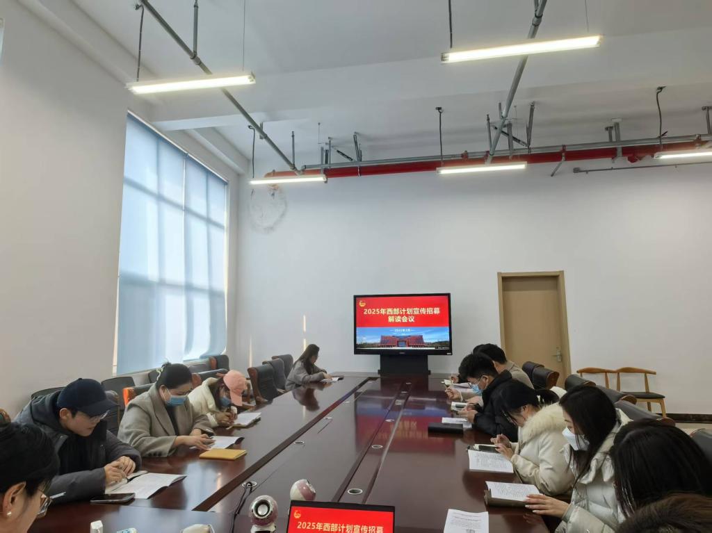 为构建“全员参与、全域覆盖、全程渗透”的西部计划宣传网络,校院两级专门组建西部计划工作小组和西部计划项目管理办公室,统筹负责西部计划工作的组织协调、政策保障和跟踪服务等工作,抓好时间节点,建立西部计划意向学生资源库,掌握学生动态意向,确保更多青年学生了解并参与到西部计划中来。实施“西部星辰”行动,面向全校毕业生选拔政治素养高、专业能力强、奉献意识突出的学生担任西部计划“推广大使”,通过开展小而精的座谈会、“面对面推介”等活动,点燃青年学生服务西部的“燎原之火”。此外,借助官方微信平台、线上答疑工作群等方式,定期推送项目动态等内容,为学生提供全天候服务,切实推动西部计划招募宣传工作有序进行。