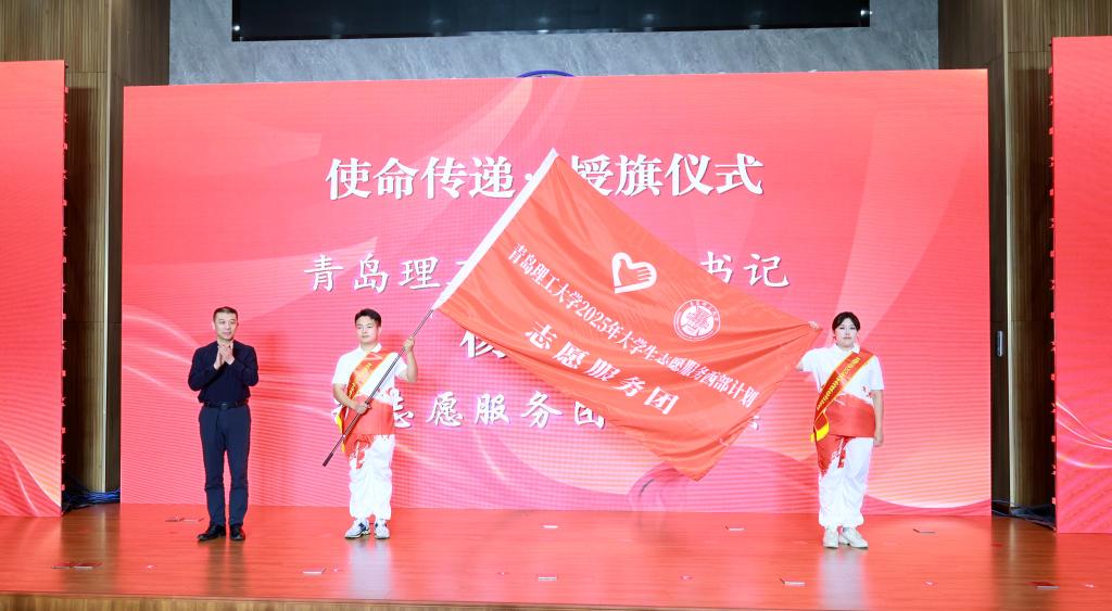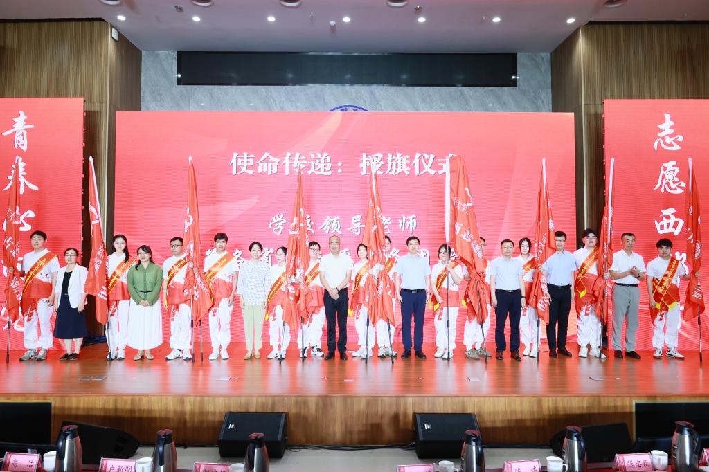 杨赟代表学校党委为志愿服务团授总旗,充分肯定志愿者们的青春选择,并送上亲切鼓励和美好祝福。他鼓励志愿者们在西部的广阔天地,以实际行动践行“奉献、友爱、互助、进步”的志愿精神,不怕吃苦、勇于担当,在基层一线经风雨、见世面、长才干,展现理工青年的风采与担当。