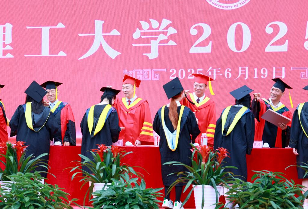 张凯寄语全体毕业生,一是以理想信念为底色,锚定青春奋斗方向。要心怀家国、脚踏实地,在时代的画卷上绘就独特青春光彩。二是以终身学习为笔墨,书写青春奋进华章。在时代浪潮中不断成长、不断超越,主动追跑、伴跑直至领跑新时代。三是以创新创造为神韵,激扬青春澎湃力量。要勇立创新潮头、敢为人先、执着追梦,以创新突破边界,用创造重塑未来。四是以实干奋斗为意蕴,铸就青春无悔答卷。要以实干立身、用奋斗立业,既做科技弄潮儿,更当思想凿井人,开凿属于自己的智慧源泉。希望同学们秉持“百折不挠、刚毅厚重、勇承重载”的理工精神,以扎实的步履紧跟时代的脚步,把青春的“小确幸”,画进时代的“大风景”!