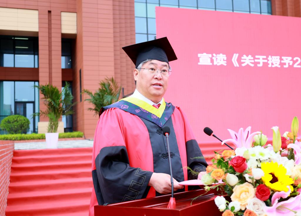 党委常委、副校长苗吉军宣读《关于授予2025届毕业生学位的决定》和《关于表彰2025届优秀毕业生的决定》