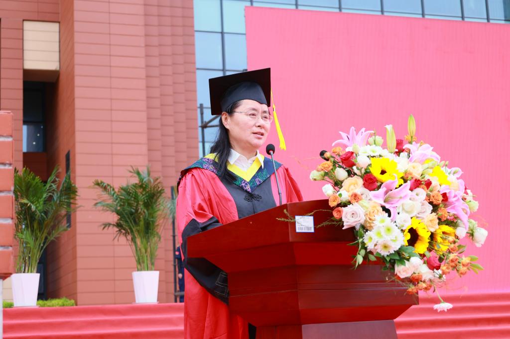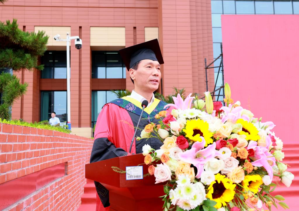 机械与汽车工程学院教授、全国优秀教师、博士生导师刘晓玲,临沂校区机械与电子工程系副教授、沂蒙最美科技工作者王勇作为教师代表发言,老师们对广大毕业生顺利完成学业表示祝贺,与毕业生一起回忆了四年的求学生涯,希望同学们志存高远、奋勇拼搏、深耕专业、心怀家国,以“千磨万击还坚劲”的坚韧,“敢教日月换新天”的豪情,在人生的道路上披荆斩棘,开创属于自己的辉煌未来。