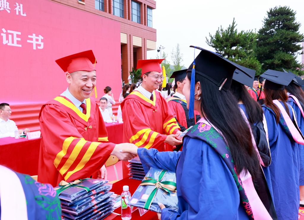 6月19日、20日,学校2025年毕业典礼分别在黄岛校区和临沂校区隆重举行。党委书记杨赟,党委副书记、校长张凯,老领导谭秀森,临沂市市委常委、市政府副市长、沂河新区党工委书记苟宏水,青岛西海岸新区副区长赵英民,学校领导班子其他成员,各学院和相关职能部门负责同志,校友代表、2025届毕业生及部分亲友出席典礼。
