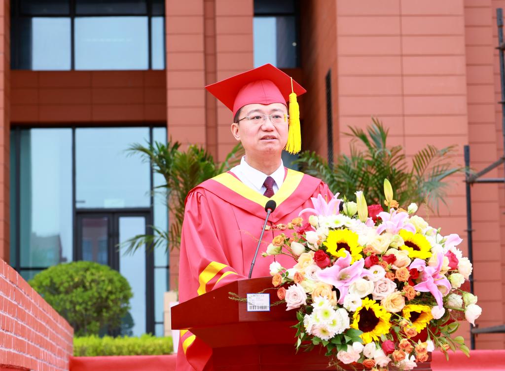 张凯在致辞中向顺利完成学业的2025届毕业生致以热烈的祝贺,向为学生成长成才付出辛勤和汗水的家长、老师、亲友表示衷心的感谢。他深情回顾了2025届毕业生在校期间的成长历程,向即将离别母校的毕业生们送上真挚祝福与殷切嘱托。