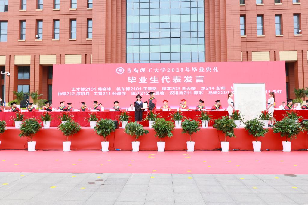典礼现场,20名来自不同学院的毕业生代表发言。同学们对学校的培养表示感谢,讲述了自己在校学习期间的收获与感悟,并分享了未来的规划与愿景。他们表示,将牢记母校嘱托,永葆青岛理工人的担当和热忱,将课堂所学转化为干事创业的本领,用实际行动奔赴各行各业最前沿。