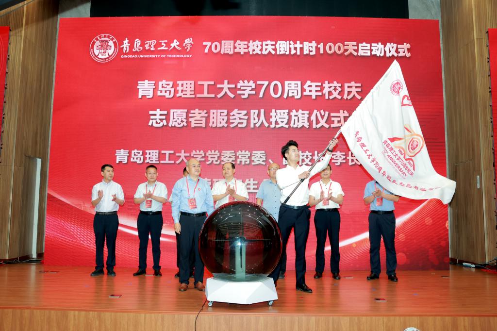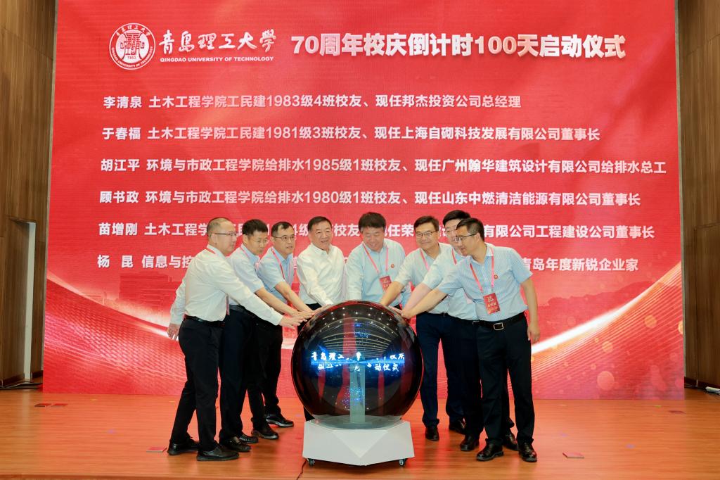 在来自全国各地校友会校友共同见证下,党委副书记李国华,青岛市邮政公司党委书记、总经理周军共同发布了70周年校庆倒计时100天纪念封;党委副书记杨兴昌,优秀毕业生代表王辛馨、费军洁、谢凯共同发布了70周年校庆标识;党委常委、纪委书记、监察专员尹东峰,优秀学生和学生干部代表曾凡斌、明玉珍共同发布了70周年校庆吉祥物;党委常委、副校长王在泉为“70年70站”校庆接力活动授旗,学校男子排球队队长吴坤臻接旗;党委常委、副校长李长河为70周年校庆志愿者服务队授旗,校庆志愿服务队负责人王柯涵接旗;副校长金祖权,获高水平科技成果教授代表赵正旭、贺可强、毕学军共同启动科技成果展示活动;老领导赵铁军,获优秀教学成果教师代表张冬梅、朱一荣、孙林娜共同启动教学成果展示活动;党委常委、组织部部长郭建锋,优秀科技创新指导教师代表李泉涛,科技创新获奖学生代表高腾、李峰、张艺婷共同启动了学生科技成果展示活动。