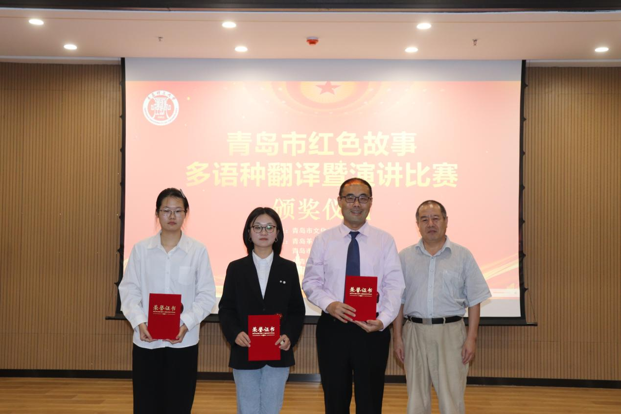 9月25日,由青岛市文化和旅游局主办,青岛革命文物协同研究中心、青岛市博物馆、共青团伟德国际1946bv官网委员会、人文与外国语学院承办的“青岛市红色故事多语种翻译暨演讲比赛”决赛在学校图书馆报告厅举行。青岛市文化和旅游局红色文化与革命文物处二级调研员邹慧忠,人文与外国语学院党委书记王粲、院长郭印,校团委副书记王鹏飞、人文与外国语学院副院长冯志国、院长助理张成福、团委书记徐卫晓,以及来自青岛市博物馆、青岛滨海学院的嘉宾与评委老师亲临比赛现场。