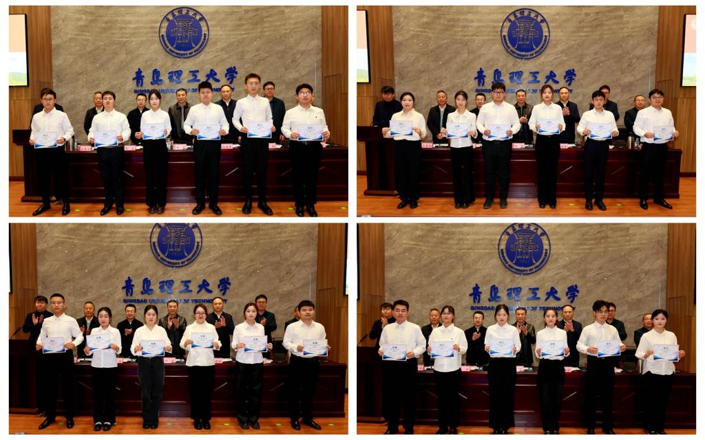 主席台就座的领导、嘉宾共同为获奖学生颁发获奖证书,并合影留念。