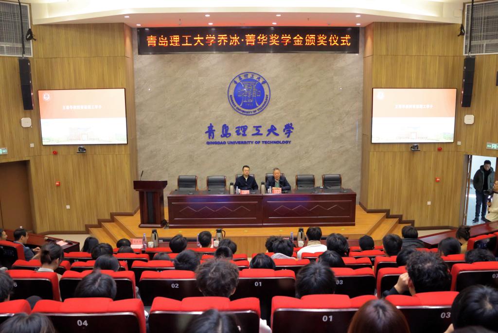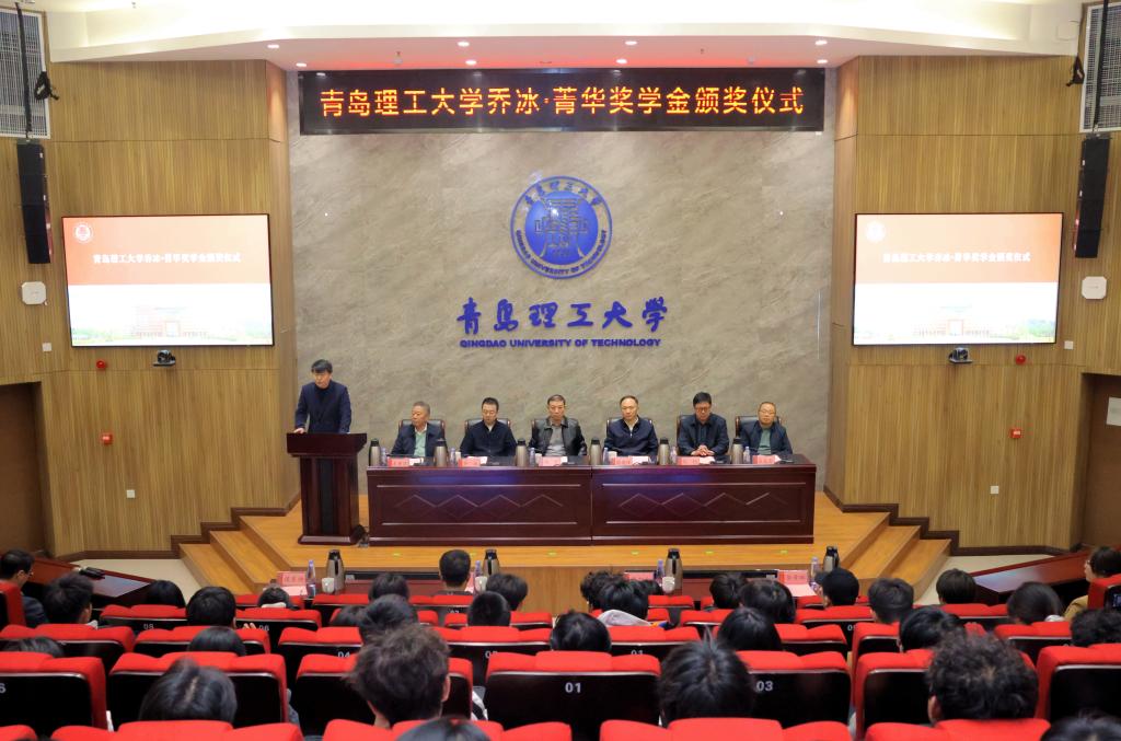 12月14日,伟德国际1946bv官网首届乔冰•菁华奖学金颁奖仪式在黄岛校区综合服务中心209报告厅举行。学校工民建专业94级校友、独牙台球控股集团董事长乔冰,学校党委书记杨赟,党委常委、副校长郭建锋,党委常委、宣传部部长、党政办公室主任钱均出席颁奖仪式。乔冰校友在校时的班主任、马克思主义学院教授王菁华,独牙台球控股集团董事长助理张旭含、运动助理邢东,合作发展处、土木工程学院、马克思主义学院等相关部门单位负责同志、辅导员、学生代表参加颁奖仪式。颁奖仪式由土木工程学院党委副书记、院长侯东帅主持。