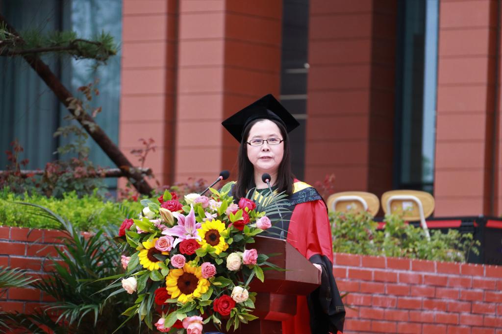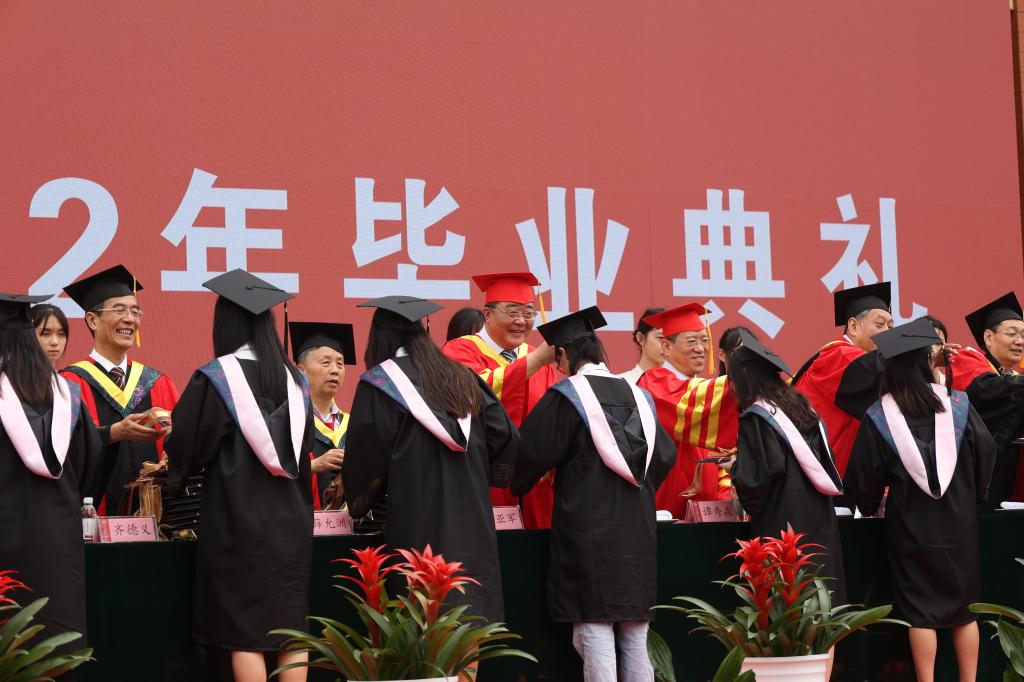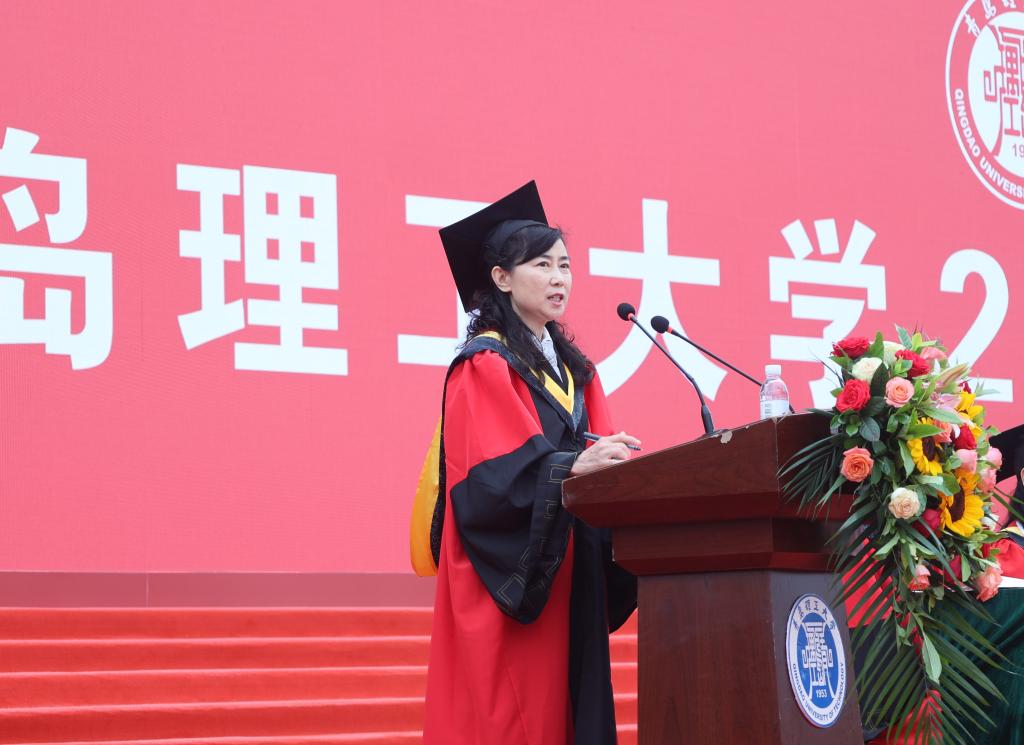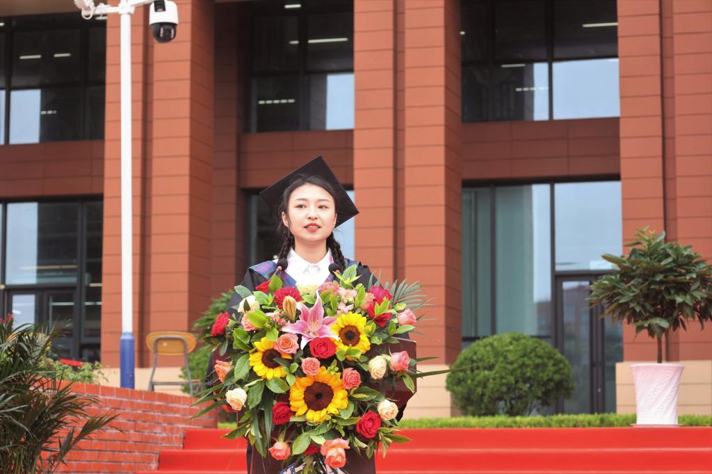 艺术与设计学院教授、国家一流专业负责人、山东省课程思政教学名师、硕士生导师李泉涛,临沂校区基础部英语教研室教师蒋金霞作为教师代表分别发言。老师们对广大毕业生顺利完成学业表示祝贺,与同学们分享了一起见证学校飞速发展的欢欣与喜悦,希望同学们志存高远、不忘初心,苦练本领、厚积薄发,善于思考、敢于探索,敢于承担民族和历史重任,在新的人生征程中,收获属于自己的成功,再创新的辉煌。