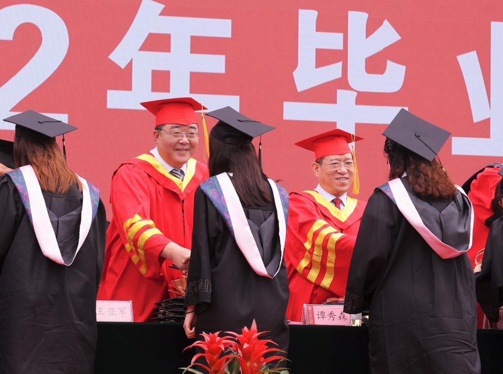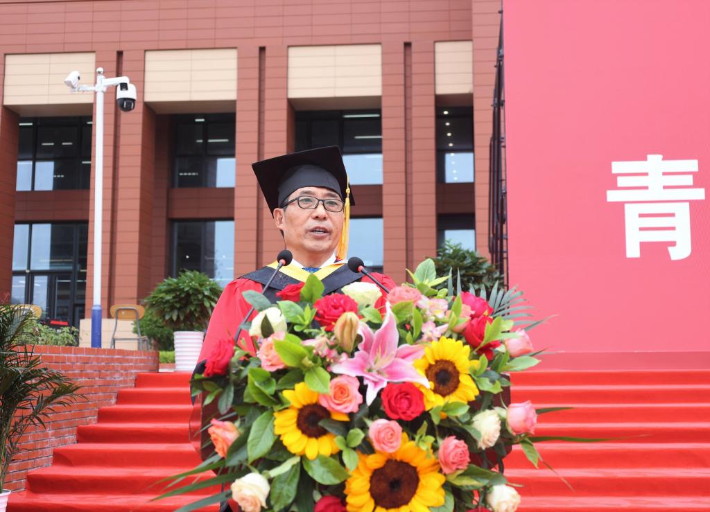谭秀森在毕业典礼致辞中代表学校向顺利完成学业的2022届毕业生致以热烈的祝贺,向为毕业生们成长付出辛勤汗水的家长和老师们表示崇高的敬意和衷心的感谢。
