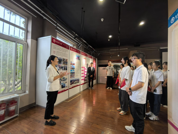 在市北校区校史馆,学院党委书记吕楠和学生党员代表、新生代表一同参观回顾校史并亲切交流。在讲解员绘声绘色的讲述中,师生一同回到那个激情年代,爱国爱校之情油然而生,“我也是你们的‘大师姐’,今年是我在学校学习、工作、生活的第30个年头,见证了一代代理工学子的成长,每一代大学生都是时代追梦人,要在大学中逐渐形成‘家国天下’的思想和情怀,用‘百折不挠、刚毅厚重、勇承重载’的理工精神奋力谱写为中国式现代化挺膺担当的青春篇章!”学院党委书记吕楠说道。