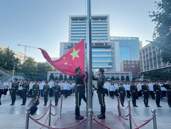 在清晨6:30的市北校区科技广场,学院举办“青春告白祖国”主题升旗仪式。五星红旗迎着朝阳冉冉升起,随风飘扬。学院全体师生仪容严整,神情庄重,向国旗行注目礼,以无比自豪的心情和崇高的敬意表达着对伟大祖国的诚挚祝福。在“国旗下的思政课”环节,学院团委书记杨霈宣带领全体青年学生用青春誓言告白祖国。“请党放心,强国有我!”的誓言回荡在科技广场,激励着青年学生在学习生活中践行报国之行,为全面推进中国式现代化中学院新实践贡献青春力量、绽放绚丽之花。